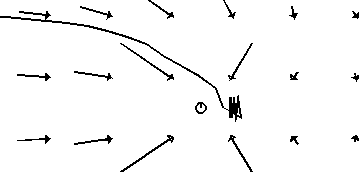 Eine Problemstelle bei der Berechnung von Bahnlinien sind die Entnahmebrunnen. Wird diese Tatsache nicht als Nebenbedingung mit berücksichtigt, ergeben sich durch die wechselnden Strömungsrichtungen überschießende Zickzacklinien: