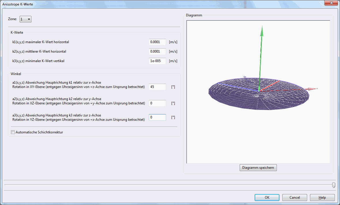 An dieser Stelle können anisotrope K-Werte entsprechend ihrer Raumrichtung differenziert zugewiesen werden.