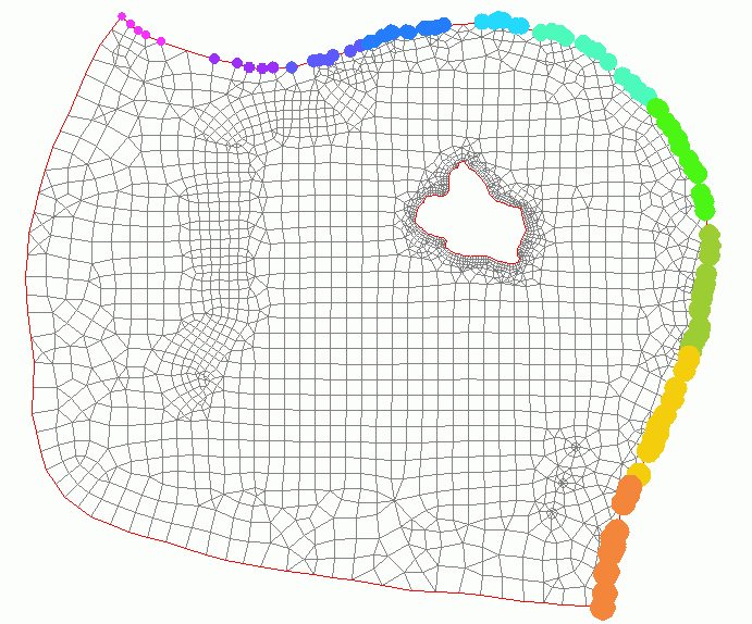 and confirmation of the prompt "Overwrite all" assigns all nodes of the north-eastern boundary a potential value! (For control, the display can be repeated as described above.)