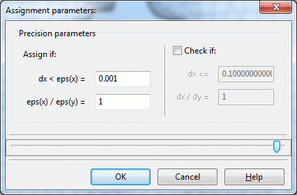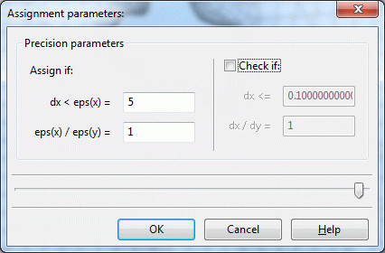 Once all structures have been selected by left mouse click and pressing the Up key and confirmed by pressing "OK", another menu appears in which the accuracy parameters of the assignment can be defined. (Note: The data type DATA is always ignored during the assignment.)