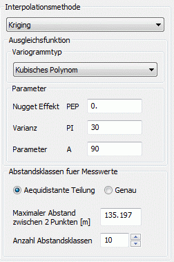 Auf die Erstellung des Variogramms ist bei Verwendung des Kriging-Interpolationsverfahrens besonderen Wert zu legen, da das Interpolationsverfahren besonders sensibel auf die Wahl der Parameter reagiert.