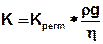 Ein vom durchströmenden Medium unabhängiger Kennwert für die Durchlässigkeit K ist die Permeabilität Kperm. Der Zusammenhang zwischen der Permeabilität Kperm eines porösen Mediums und der Durchlässigkeit K dieses porösen Mediums in Bezug auf ein strömendes Fluid lautet: