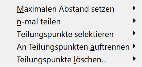 Achtung! Alle bereits vorhandenen Teilungspunkte innerhalb der ausgewählten Konturen werden dadurch gelöscht!
