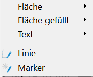 Der Menüpunkt Fläche zeichnet nur den Umriss der Fläche, während der Menüpunkt Fläche gefüllt die gezeichnete Fläche farbig ausfüllt.