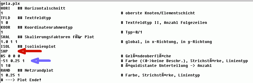 Der Export von Isolinien mit Wertzuweisung ist in SPRING über die folgende Eingabe in der Batch-Datei der Ploterstellung möglich.