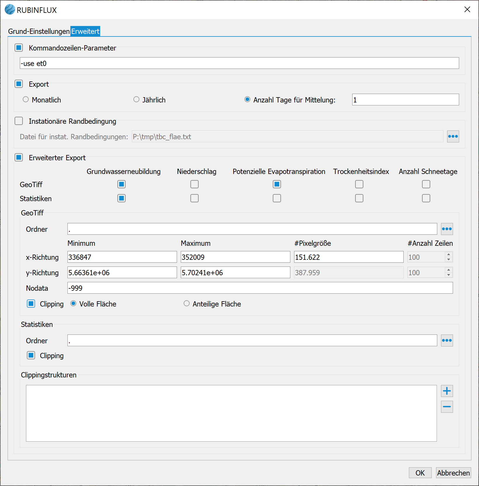 In den erweiterten Einstellungen muss der Anwender über die Art der Mittelung festlegen, ob die instationäre Neubildung für jeden Tag (Mittelung = 1) oder z. B. nur für jeden 10. Tag (Mittelung = 10, entspricht dem Mittelwert über 10 Tage) berechnet wird.